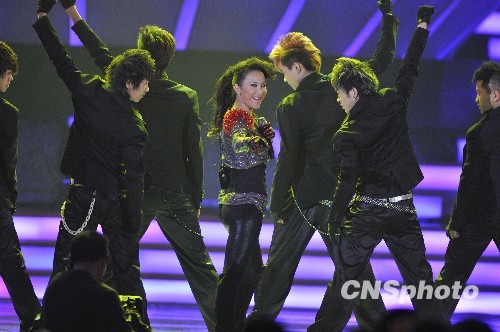 图为李玟捧得年度最佳女歌手奖后献舞。中新社发 李学仕 摄