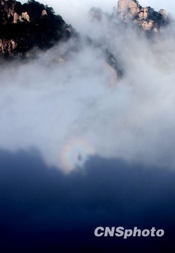 组图:黄山出现罕见云海“佛光”奇观(3)