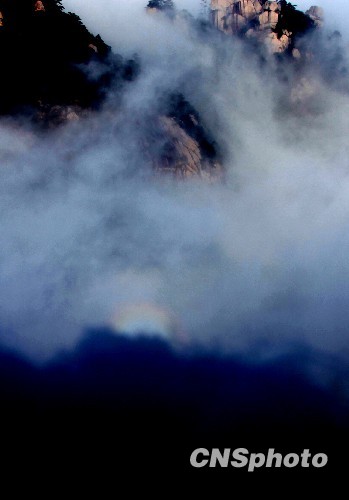 组图:黄山出现罕见云海“佛光”奇观(4)