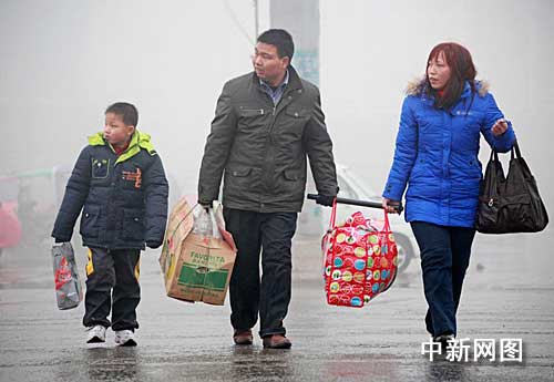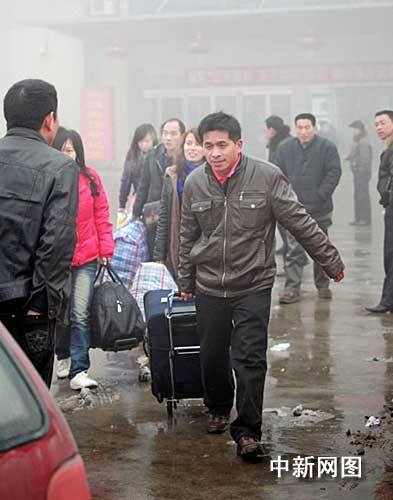 中新网滑县2月8日电 (记者 师红垒 通讯员 王子瑞)2月7日下午,受一股东下冷空气的影响,河南大部分地区在一场小雪后出现近段时间罕见的大雾天气。河南省滑县汽车站迎来大批回家过年的旅客。完
