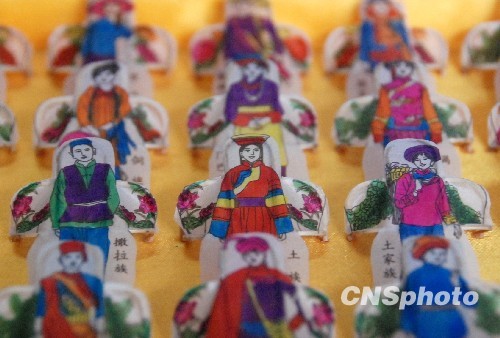 为喜迎新年到来,一套由身穿不同民族服饰的“56个民族代表”组成的观赏微型风筝亮相山东潍坊,据悉,风筝人物高5cm、宽3cm ,均采用丝绢面料和竹条手工制作而成,人物身着盛装,造型各异,色彩纷呈,象征着56个民族携手喜迎新年。