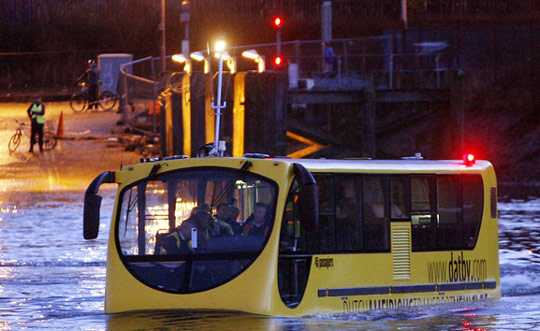 英国两栖巴士"试水" 媒体面前尴尬熄火