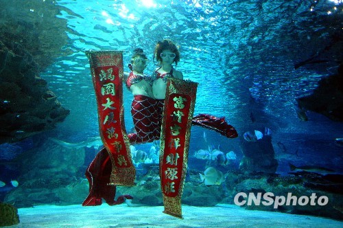 图:沙虎鲨与潜水员共同排练迎虎年(2)