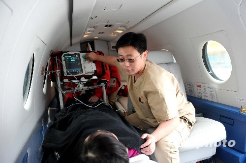 专业医疗救护飞行服务亮相内地。中新社发 远舟 摄