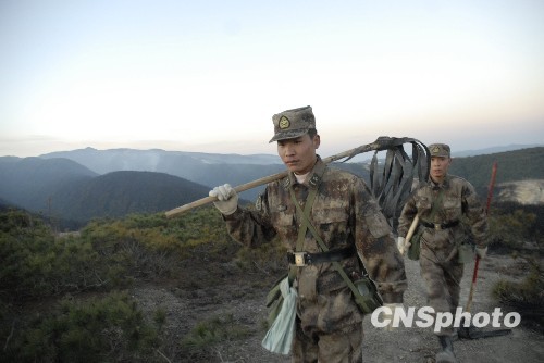 图为参与抢险的驻滇某部队官兵正在巡查清理火场。中新社发 田洪 摄