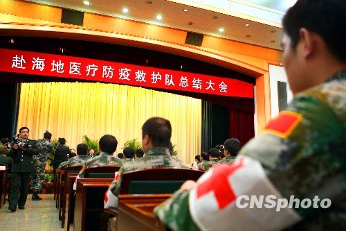 赴海地中国医疗防疫救护队2月10日上午8时完成任务回到北京,随后所属部队举行总结大会。此次医疗防疫救护累计诊治近4000人,发放药品150余种,消毒杀虫面积达5.1万平方米、房屋帐篷2200余间(顶),现场卫生知识宣传教育2100余人,发放防疫防病知识宣传材料8000余册,检测报告传染病20余例,赢得了联合国驻海地地震稳定特派团及海地人民的广泛赞誉。