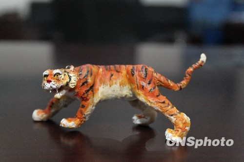 图:河南雕塑大师创作微缩老虎面塑(2)