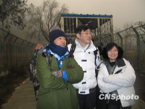 2月10日11时,经过了73小时“与虎同居”的惊险历程,李航、阙晓天、孟紫辉3人步出特制的“钢铁笼子”,昭示着3名勇士“虎山73小时生存挑战”圆满胜出。图为三人在虎区合影。中新社发 冽玮 摄