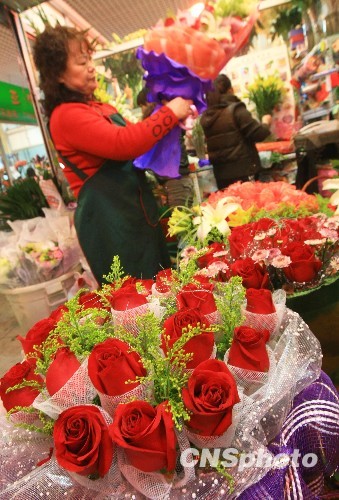 情人节“邂逅”春节,乌鲁木齐玫瑰花销售不温不火。中新社发 刘新 摄
