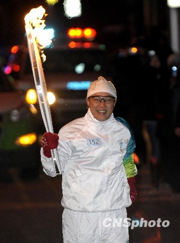 中国香港火炬手陈奕迅在加拿大蒙特利尔市参加2010年温哥华冬季奥运会火炬传递。中新社发 欧阳夏宇 摄