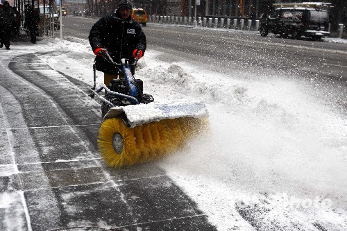 新一轮暴雪再度袭击美国东部地区。图为曼哈顿环卫工人正在除雪。中新社发 孙宇挺 摄