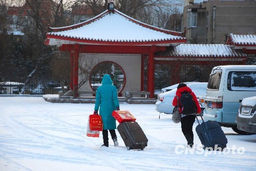 2月11日,济南市平阴县街头市民行走在厚厚的积雪上,一场瑞雪伴随着虎年春节悄然而至,这次降雪天气对春运造成一定影响。 中新社发 张庆民 摄
