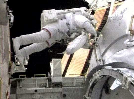 美国当地时间2月11日,“奋进”号航天飞机上的航天员走出国际空间站,开始对空间站进行外部维修。