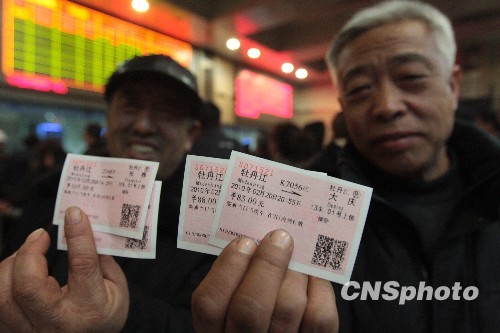2月11日晚7时,黑龙江省牡丹江火车站开始出售春节长假结束后的首日(2月20日)火车票,3000余名市民不畏严寒、劳累,提前一两天便坚守在火车站售票大厅内外,排队购票。
