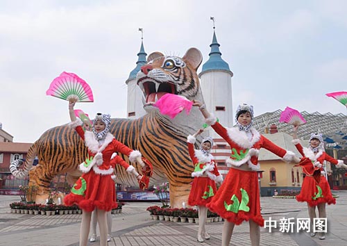 “瑞虎”昂首挺胸地屹立在长沙世界之窗公园主广场上。