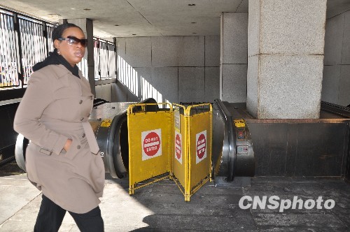 图为当日下午事发的地铁站入口放着“请勿入内”的警示牌。中新社发 吴庆才 摄