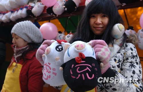 图:“猪流感”卡通玩具亮相北京春节庙会(2)