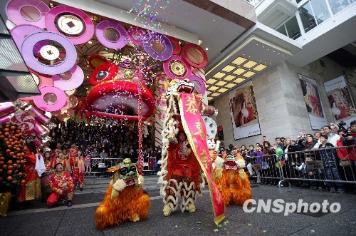 2月14日,大年初一,香港处处洋溢新年气氛。尖沙咀海港城举行“庚寅年—炮竹一声迎新岁”表演。