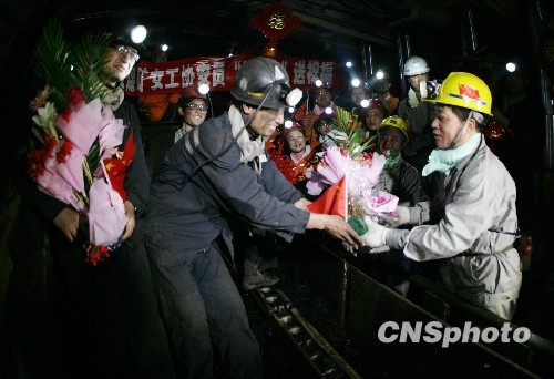 图:安徽宿州六百米井下拜年 鲜花送矿工(2)