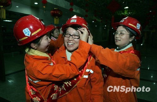 皖北煤电集团公司女子协安员准备下井慰问一线矿工。中新社发 黄启军 摄