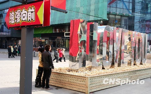图为游人在观看沈阳爱情纪念碑。中新社发 刘宝成 摄