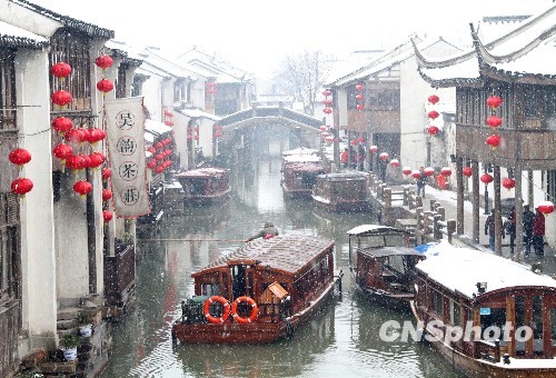 姑苏降瑞雪迎新春。中新社发 王建中 摄