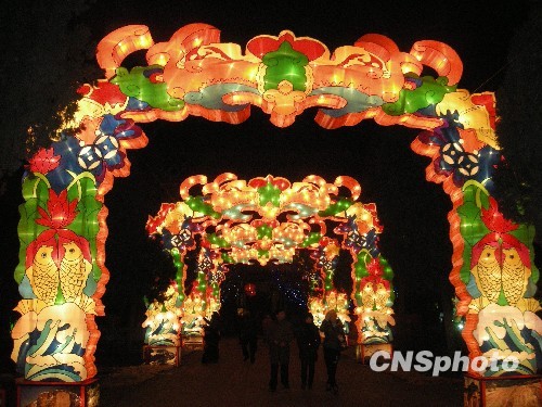 图为在泰山岱庙举办的2010年泰山迎春元宵灯会现场。中新社发 贺安栋 摄
