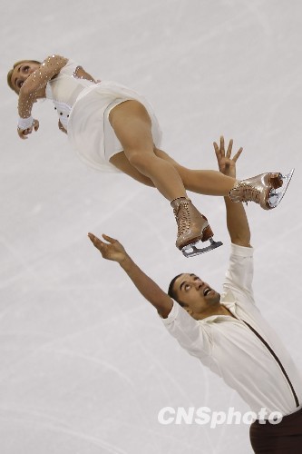 当地时间2月15日,2010年温哥华冬奥会花样滑冰双人自由滑的比赛在加拿大温哥华太平洋体育馆结束,德国选手SAVCHENKO Aliona/SZOLKOWY Robin获得铜牌。