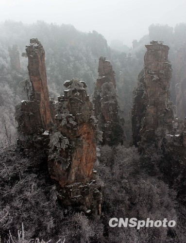 图:湖南张家界武陵源新年降瑞雪(2)