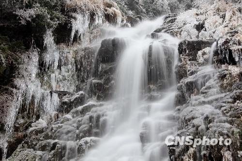 图:安徽黄山三江源头出现“冰瀑”奇观(5)