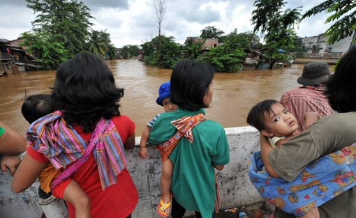 印尼爪哇岛西部的雅加达和茂物地区近日来连降暴雨,芝里翁河河水泛滥,附近地区的数千名居民不得不撤离家园。