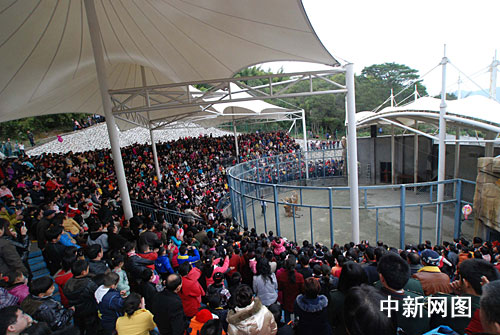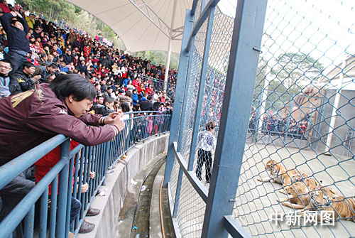 虎年新春,福州动物园内的东北虎表演场馆内游人如织,东北虎表演场场爆满,众多游客争相前来观看。