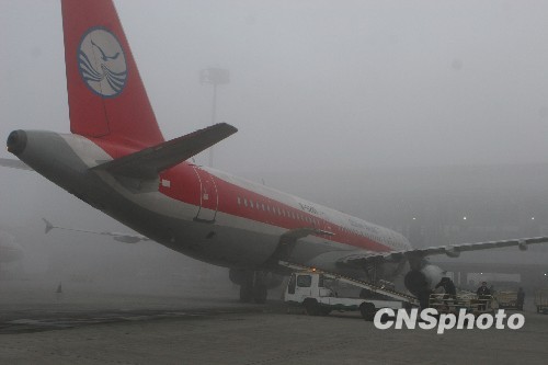 成都双流机场遭受大雾袭击 近万返程客滞留