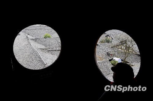 2月19日中国农历大年初六,游客在古代巴国国都的四川省阆中市中天楼上欣赏古城景观。中新社发 廖攀 摄