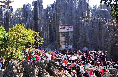 今年春节期间,中国著名景区云南石林平均每天迎接15000名游客。从初一至初六期间,石林景区共接待中外游客90000余人。