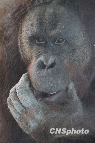 图为红猩猩“乐申”。中新社发 阿董 摄