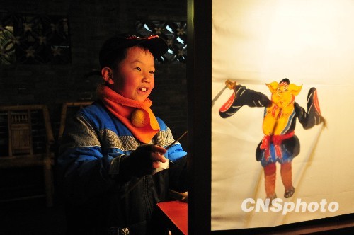 2010年2月20日,夜色中的成都宽窄巷各类丰富多彩的民族手工艺品让人大饱眼福,而具有可操作性、互动性的皮影戏最受游客喜爱。