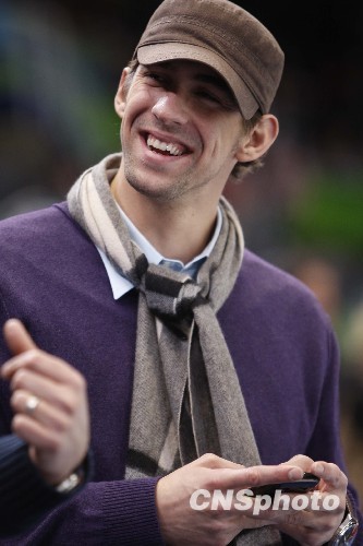 图为菲尔普斯到场观看比赛。中新社发 盛佳鹏 摄