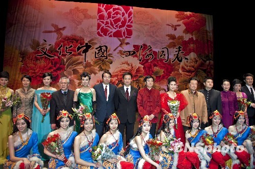 当地时间2月21日晚,国务院侨办副主任许又声率领的“文化中国·四海同春”艺术团在硅谷佛林特中心进行北美第二场慰侨演出,担纲演出的解放军总政歌舞团和军乐团的艺术家们的精彩表演为旧金山湾区的侨胞增添新年的喜庆气氛,演出比预计延长了近1个小时。图为演出结束后的场景。中新社发 陈钢 摄