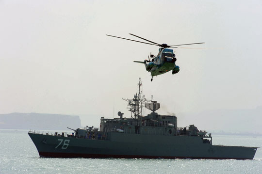 图:伊朗首艘国产驱逐舰在波斯湾进行演练 (2)