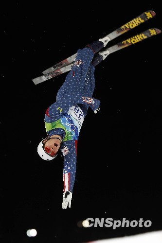 当地时间2月22日,2010年温哥华冬奥会自由式滑雪男子空中技巧预赛在温哥华塞普里斯山滑雪场举行,25名参赛选手争夺12个决赛席位。图为美国选手Ryan St. Onge在比赛中。中新社发 盛佳鹏 摄