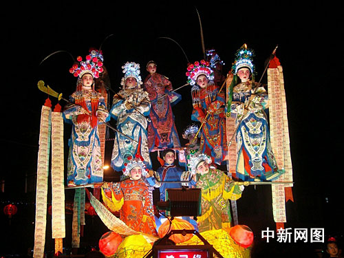 22日—25日,浙江温州乐清市蒲岐镇等乡镇连续三天,举行盛大的民俗文化活动——抬阁表演,喜迎元宵。一副抬阁由3至7名童男童女任主角,他们扮演群众喜闻乐见的戏剧人物,有“贵妃醉酒”“八仙过海”、“天女散花”、 “三国演义”等。 据预计,在这三天里共有20万人沿街观看。(记者 赵晔娇 通讯员 李兴中)
