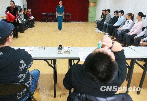 2月22日,考点主考老师在点眼药水。这名老师因连日教务繁重,着急上火,患了眼疾。中新社发 张学军 摄