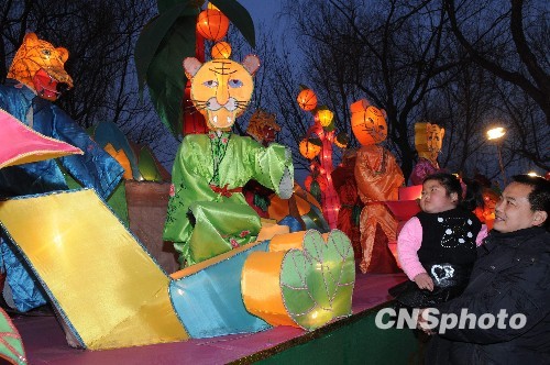 游客在山东省淄博市淄川区奎盛园欣赏花灯。中新社发 闫盛霆 摄