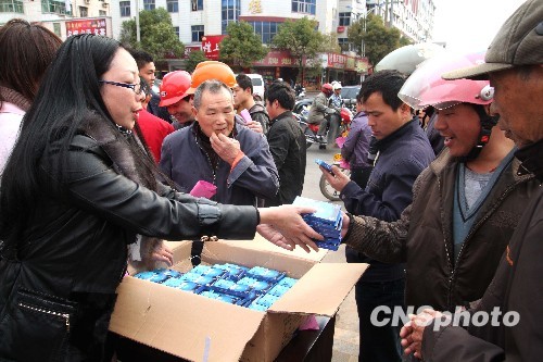 图:江西为外出务工人员发放计生用品(2)
