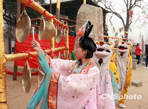 2月24日,河南郑州“春姑娘”率领“小虎队”敲响二十四节气锣迎接新春的到来。中新社发 王中举 摄