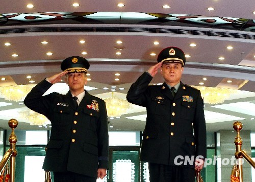 2月24日下午,中国人民解放军副总参谋长侯树森中将,在北京八一大楼为来访的日本陆上自卫队参谋长火箱芳文上将举行欢迎仪式,随后就双方关心的问题举行了会谈。