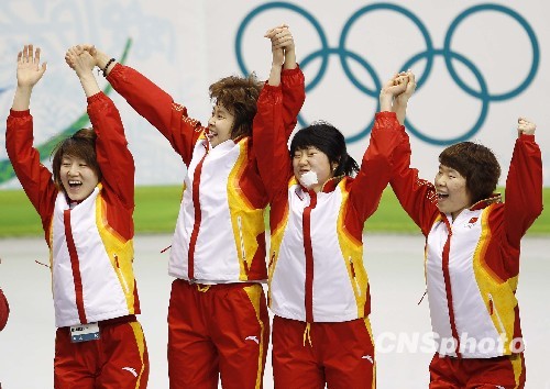中国选手在夺得冠军后庆贺。中新社发 盛佳鹏 摄