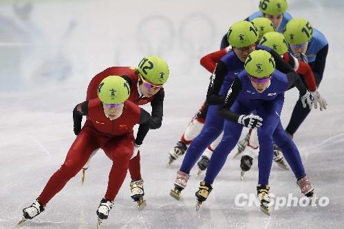 当地时间2月24日,2010年温哥华冬奥会短道速滑女子3000米接力决赛在温哥华太平洋体育馆结束,中国短道速滑队获得冬奥会冠军,韩国队因犯规,无缘奖牌。中新社发 盛佳鹏 摄
