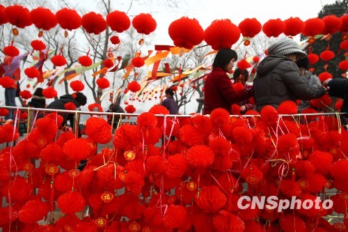 图:北京什刹海贴灯谜挂花灯迎元宵佳节(2)